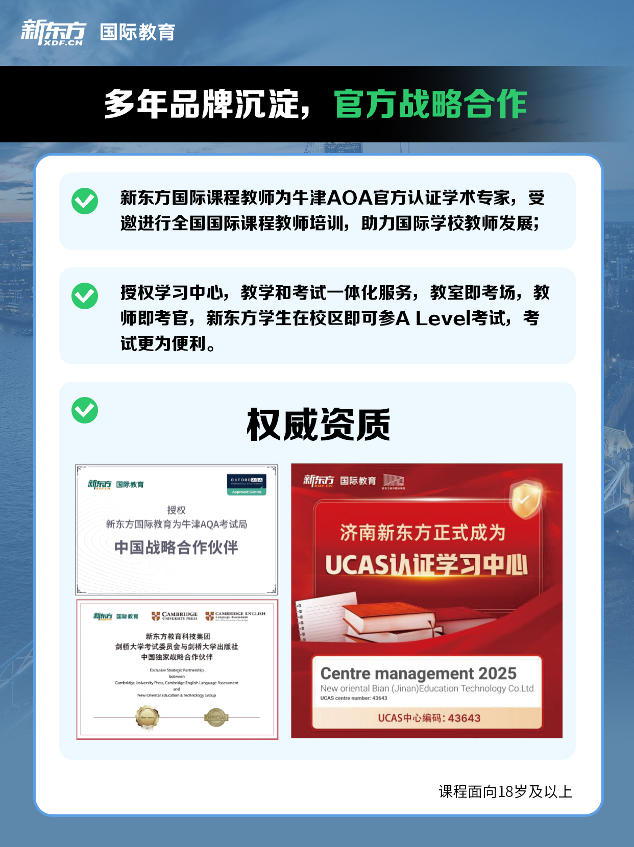 济南新东方国际教育专注于雅思、托福、AP、IB、A-Level、SAT&ACT、OSSD、IGCSE、AEAS、小托福、KET、PET、Global You英语提能课程等国际(课程)考试,提供专业系统的备考辅导及贴心靠谱的规划指导~有任何课程需求请扫描下方二维码咨询~