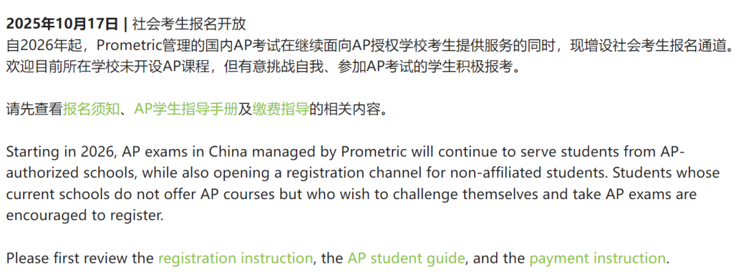 10月17日,CB官方正式官宣2026年AP社会考生中国大陆报名通道!11.14日通道即将关闭!