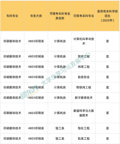 湖南统招专升本【印刷媒体技术】专业可报考的本科专业