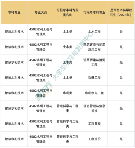 湖南统招专升本【智慧水利技术】专业可报考的本科专业