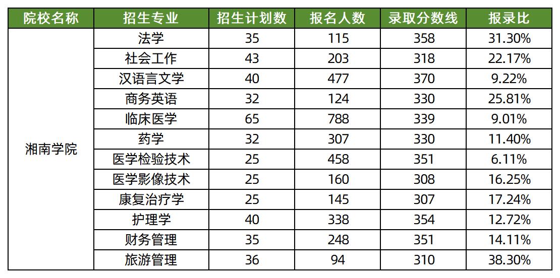 2025年湘南学院专升本共12个专业,招生计划数共433人,各专业具体报录比汇总如下: