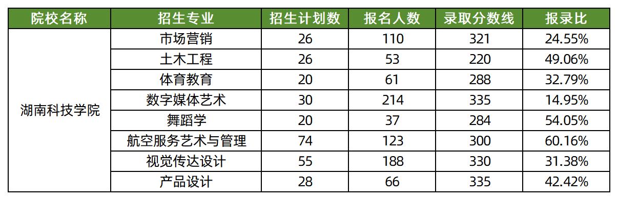 2025年湖南科技学院专升本共8个专业,招生计划数共279人,各专业具体报录比汇总如下: