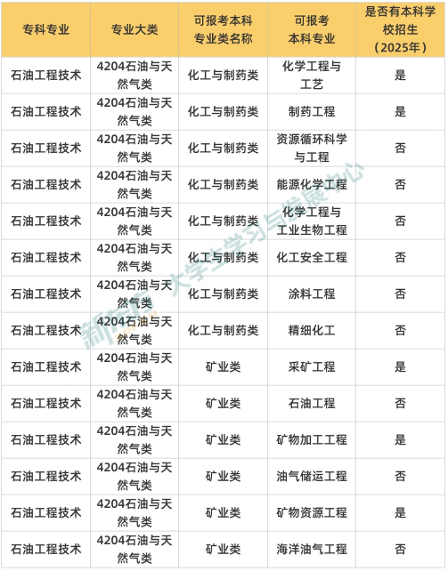 湖南统招专升本【石油工程技术】专业可报考的本科专业
