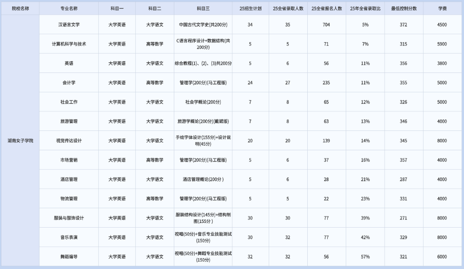 专升本备考阶段,目标院校的招录数据是考生把握报考难度、制定备考规划的关键依据。2025年湖南女子学院专升本招录相关数据已发布,本文整理2025年湖南女子学院专升本各专业招生计划、录取人数、报名人数、录取比例及最低控制分数等核心数据,为考生报考提供参考。