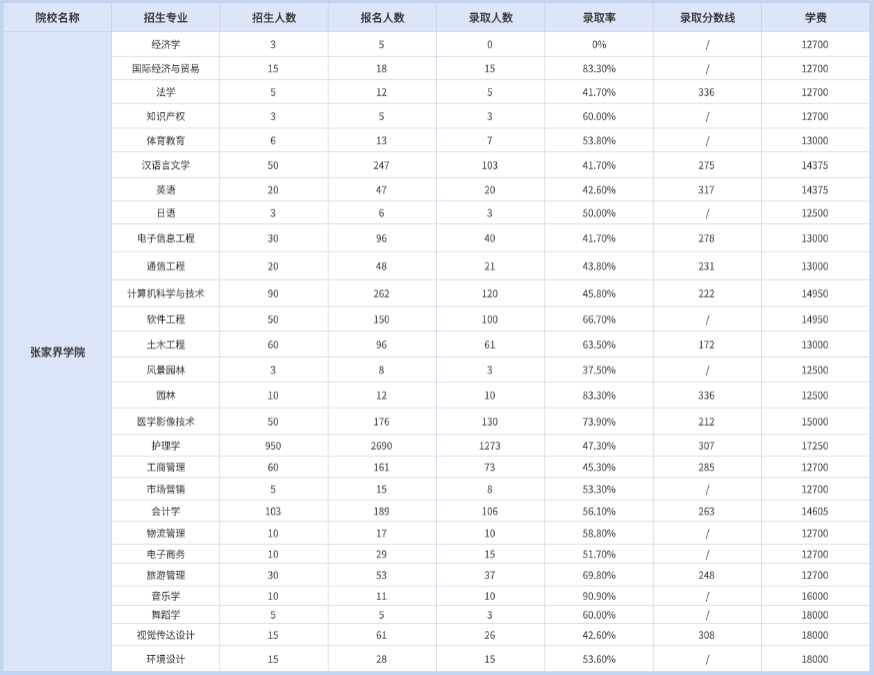 湖南统招专升本2026年考张家界学院有哪些参考数据?