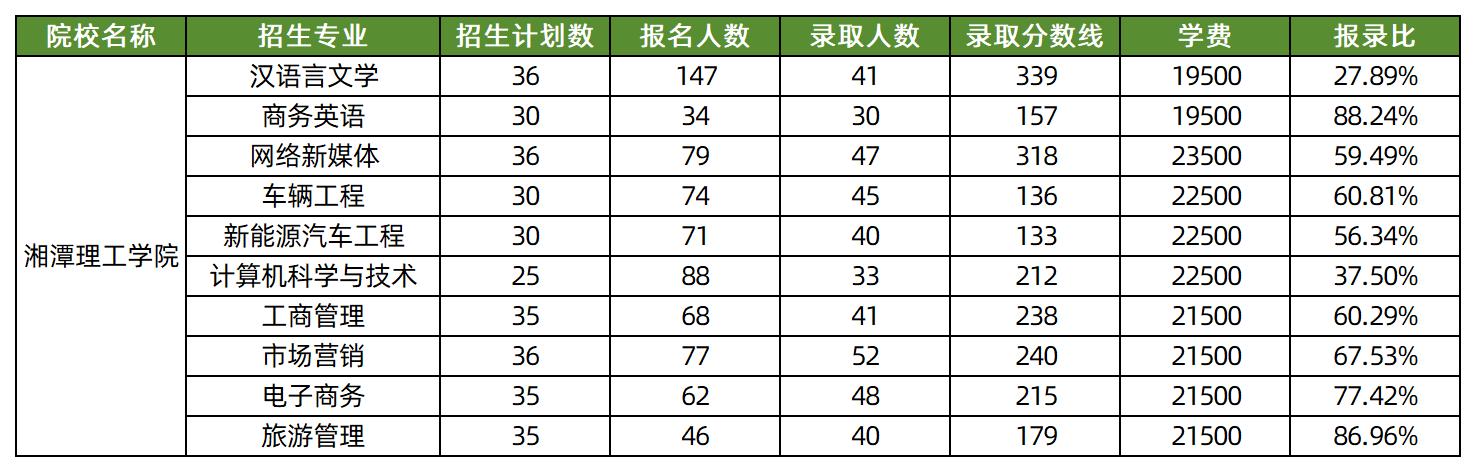 2025年湘潭理工学院专升本共10个专业,录取人数共417人,各专业具体招录情况汇总如下: