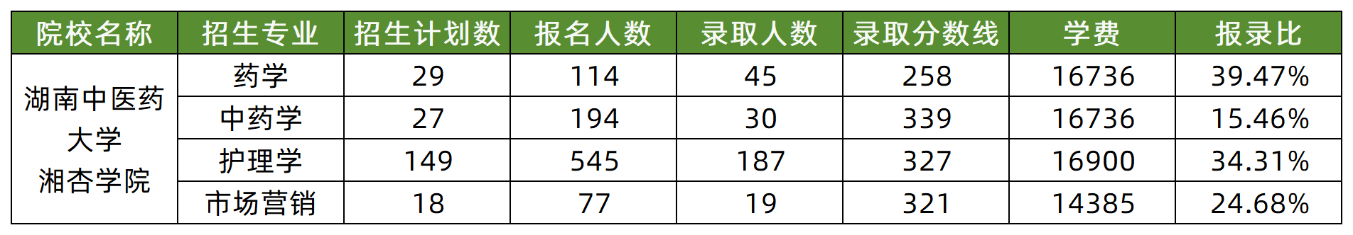 2025年湖南中医药大学湘杏学院专升本共4个专业,录取人数281人,各专业具体招录情况汇总如下: