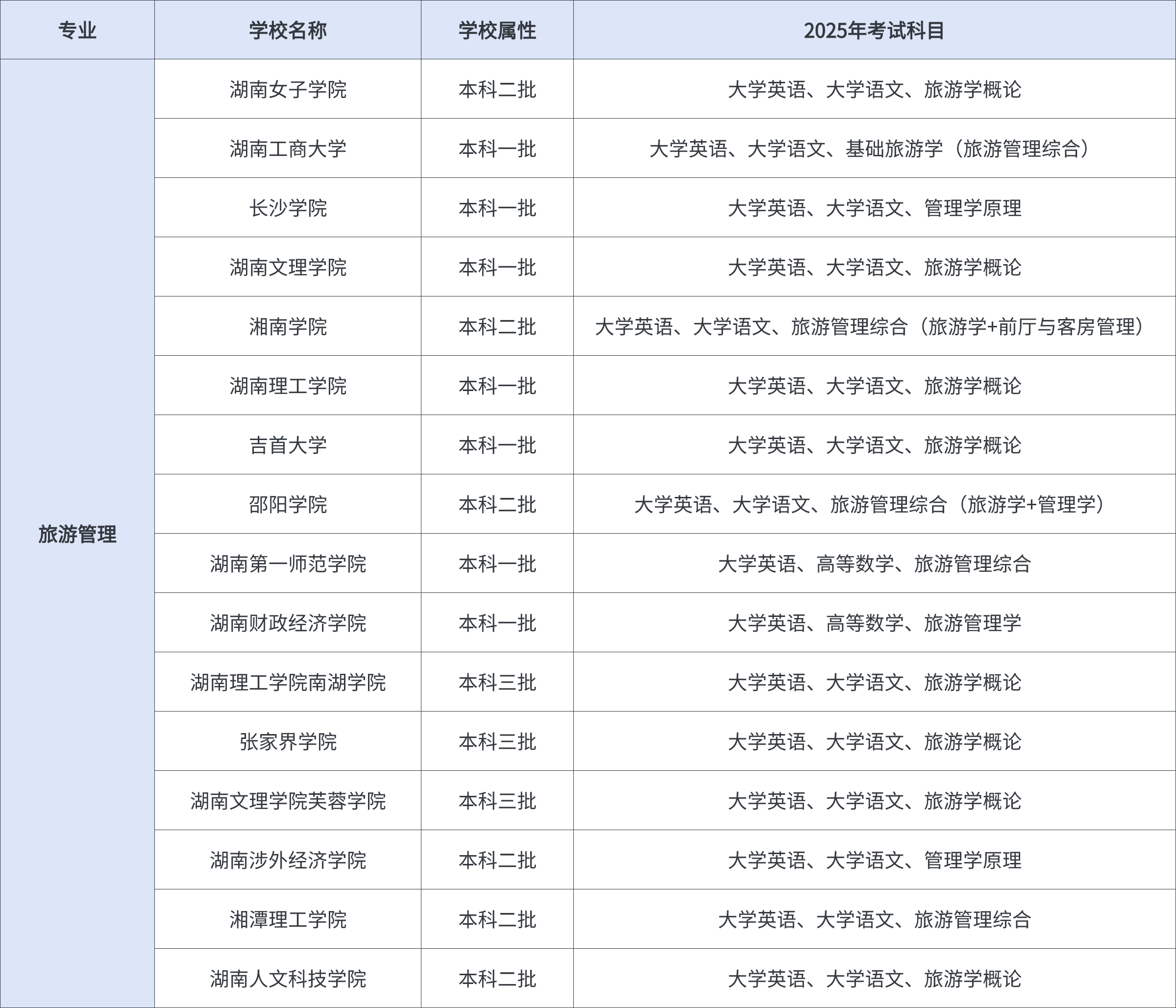 2025年旅游管理专业有以下院校招生,供26届考生参考与规划: