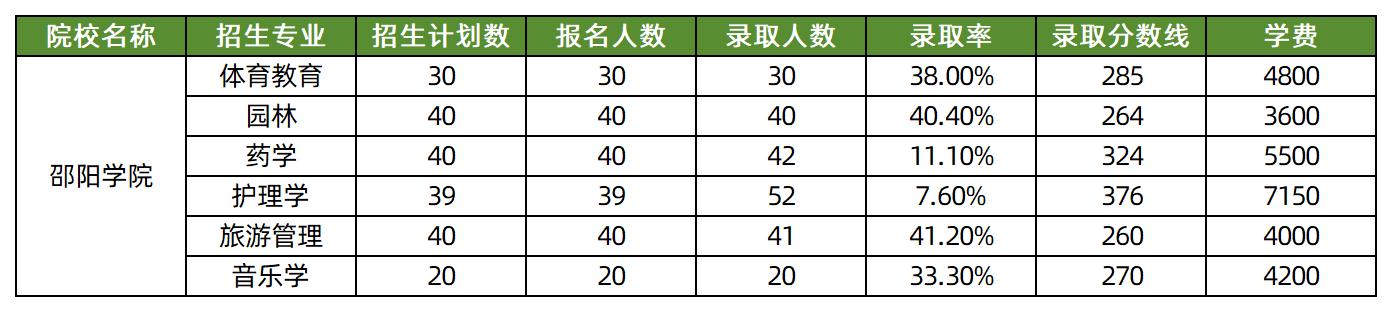 2025年邵阳学院专升本共6个专业,录取人数225人,录取分数线最高376分、最低260分,各专业具体招录情况汇总如下: