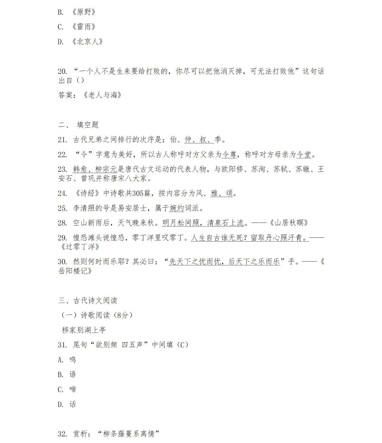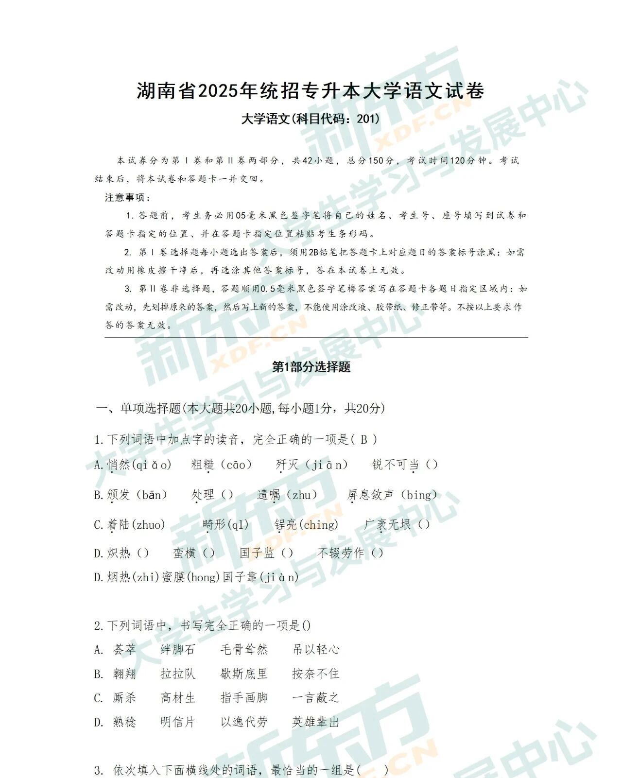 大二大三湖南升本必看!2025年湖南省专升本大学语文真题(附答案解析)