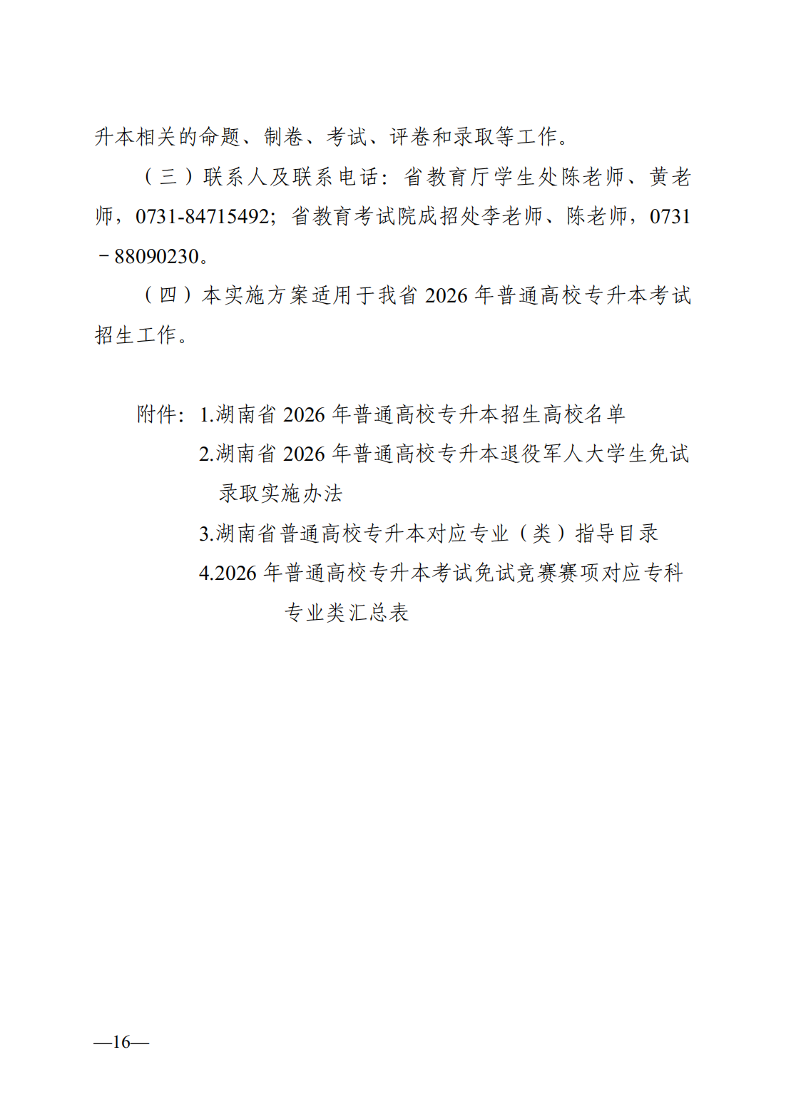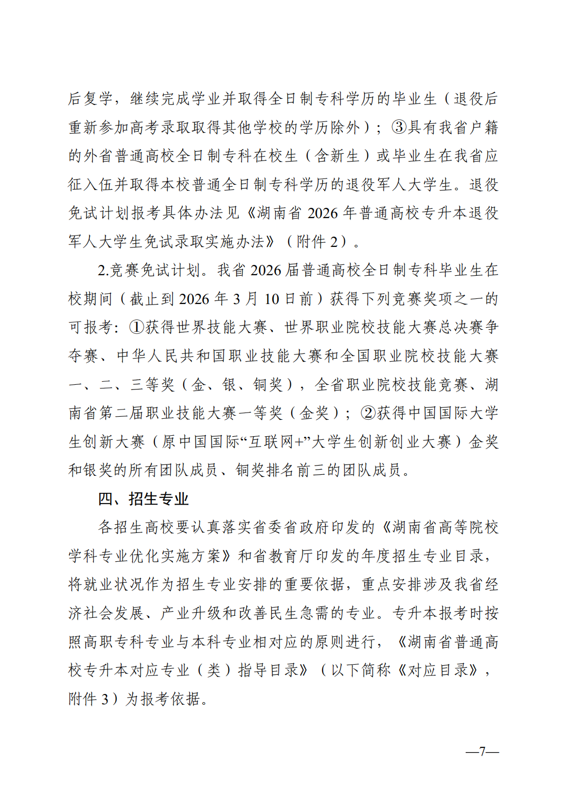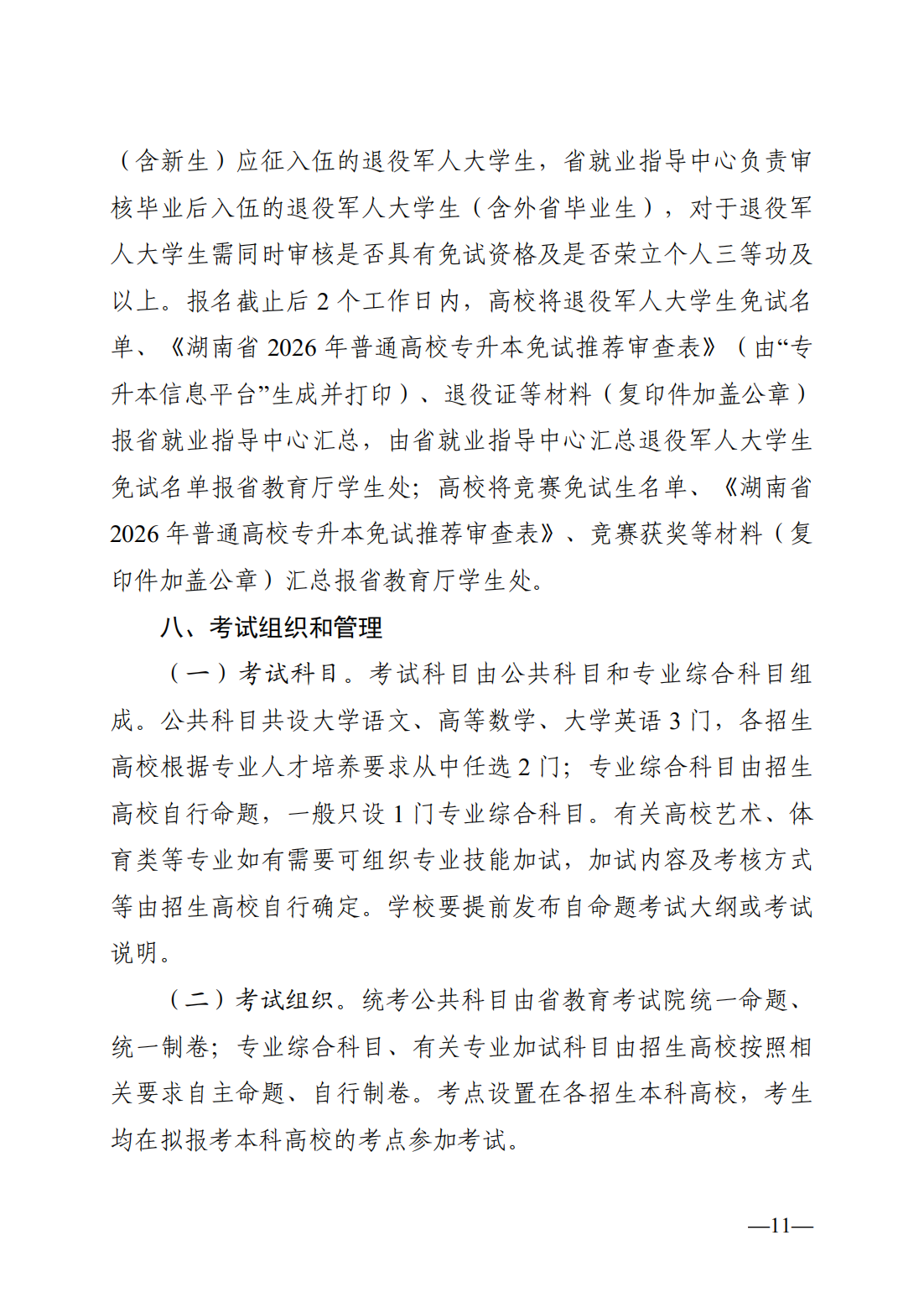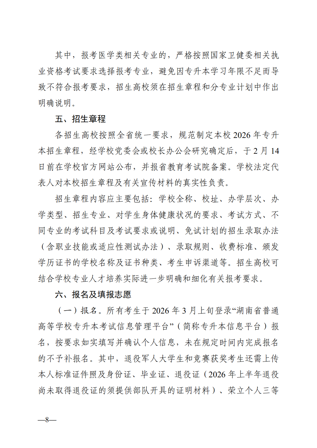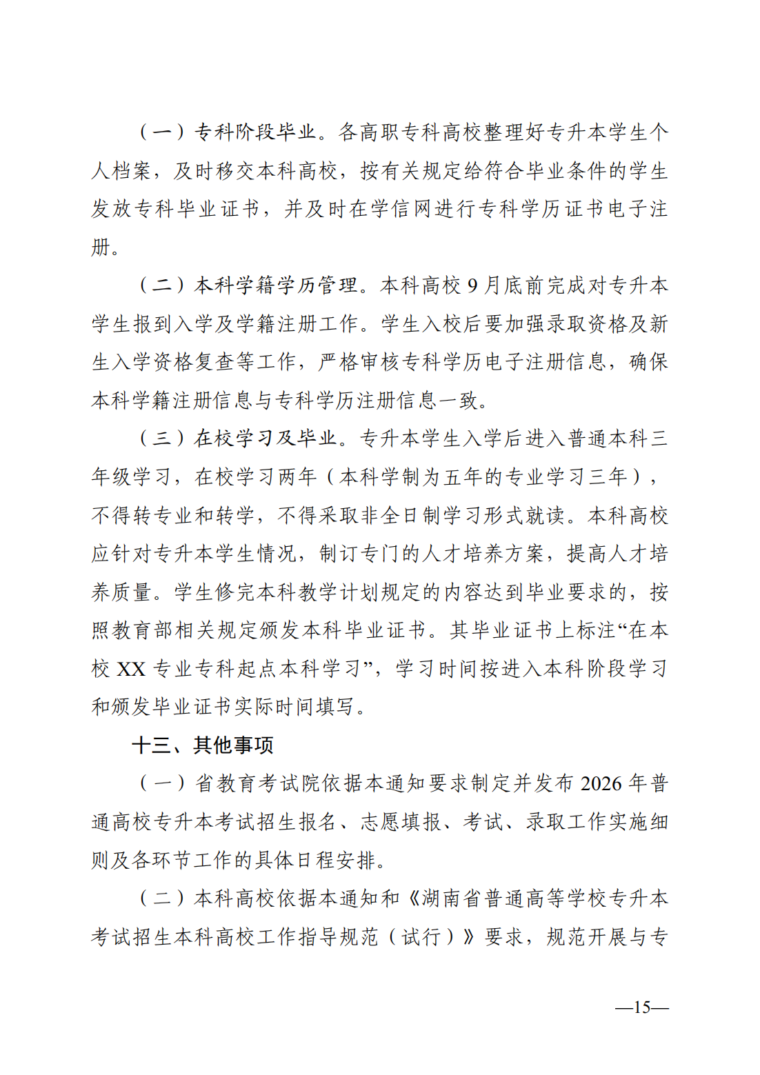 湖南省2026年普通高等学校专升本考试招生工作实施方案