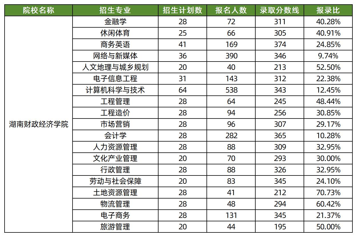 2025年湖南财政经济学院专升本共19个专业,招生计划数共557人,各专业具体报录比汇总如下: