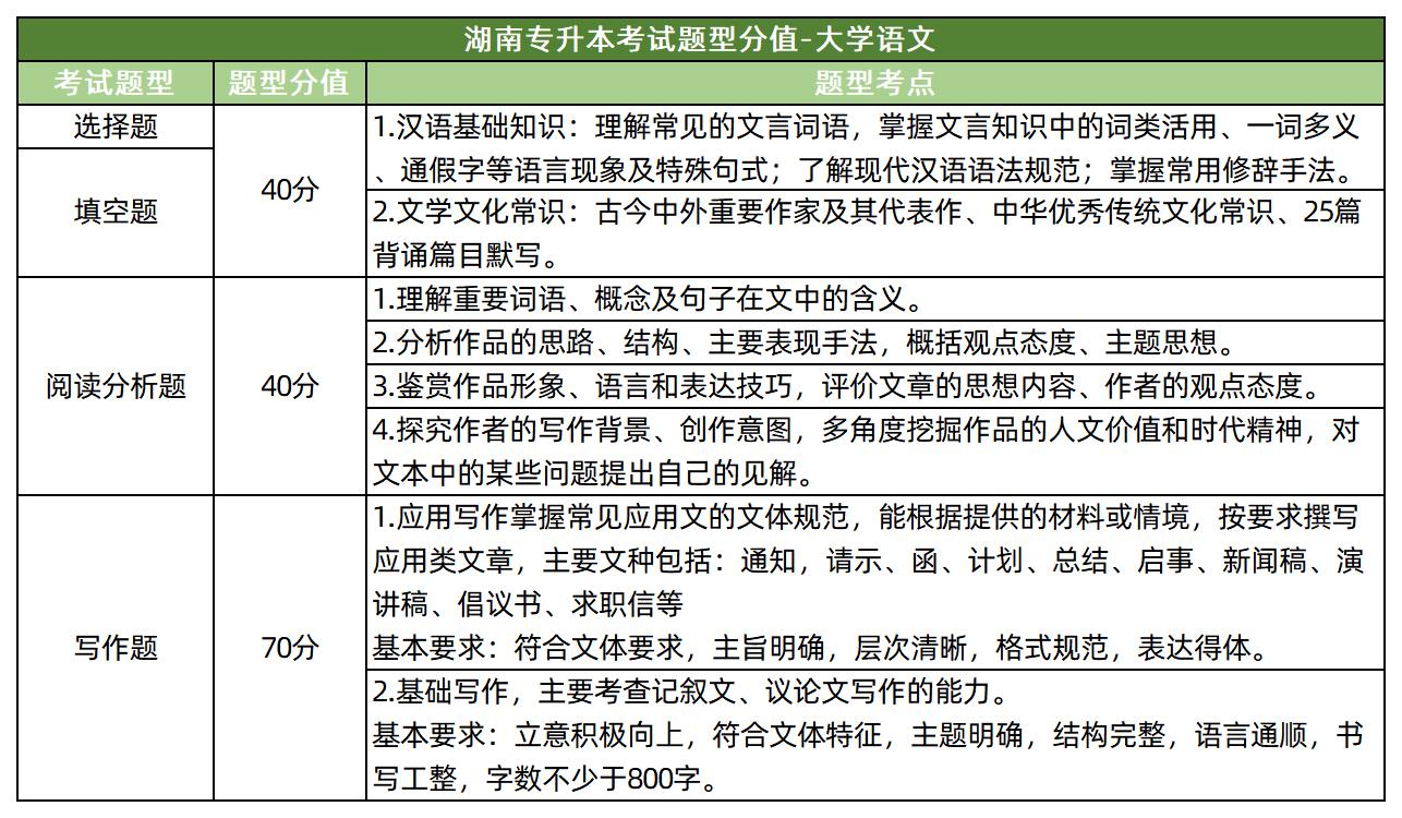 湖南专升本统考中,大学语文的满分为150分,考试时间为120分钟,具体的考试题型及分值分布如下: