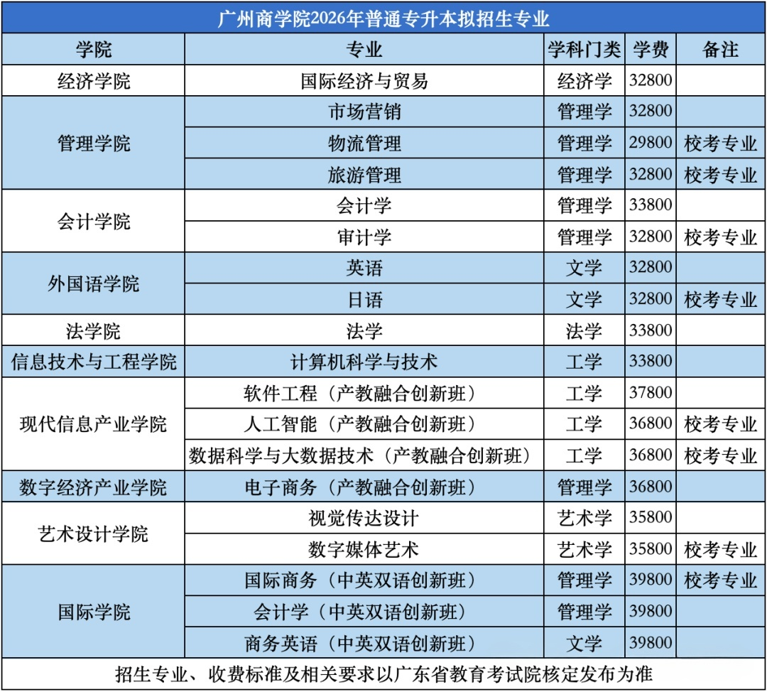 广州商学院2026年专插本拟招生专业公布,附往年录取分数线!