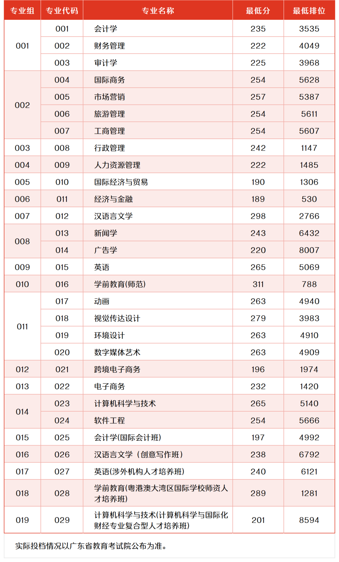 录取最低 分公布,5月22日,广东省2025年普通专升本普通批次顺利完成投档工作。根据投档数据统计分析,我校生源质量良好,在普通批次中共投档1295人(不含退役士兵、三二分段、建档立卡批次)。其中,会计学、市场营销、汉语言文学、新闻学、英语、学前教育(师范)、视觉传达设计、计算机科学与技术、学前教育(粤港澳大湾区国际学校师资人才培养班)等专业(班)报考热度高,持续受到广大考生的踊跃追捧,这充分反映出考生对广州华商学院优势专业的认可程度不断攀升。广州华商学院2025专升本录取最低分