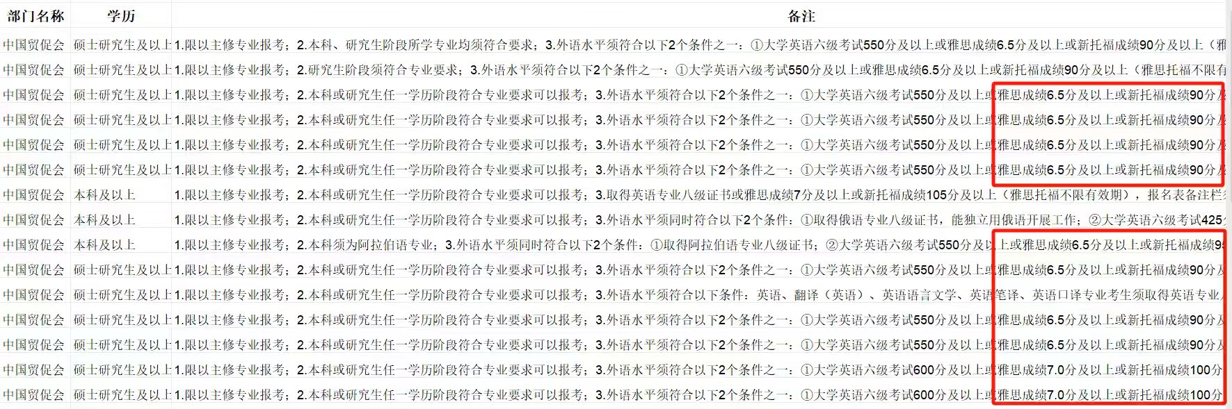 多个岗位要求或承认雅思/托福成绩
