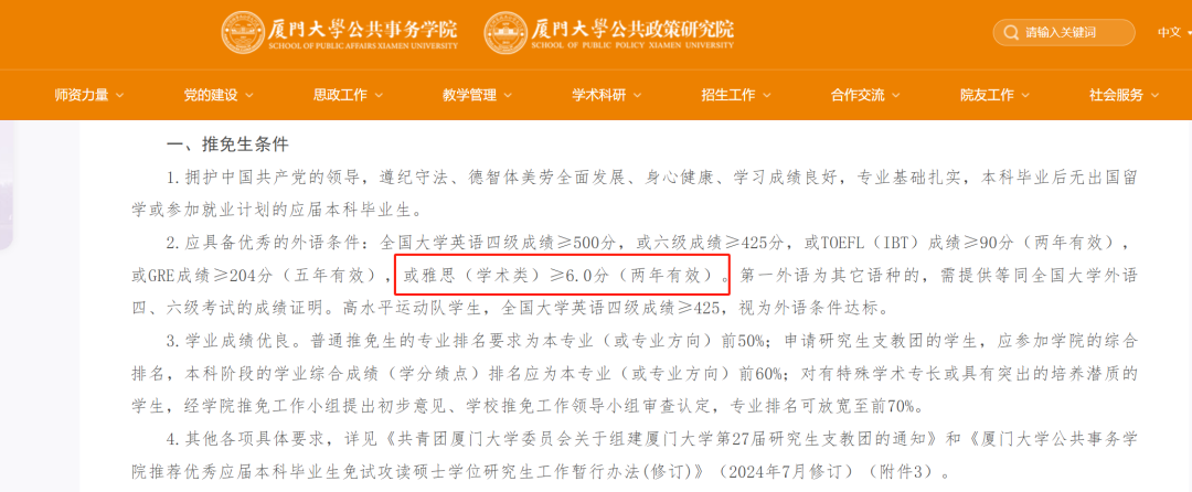 例如,上海交通大学、厦门大学等高校在最新的保研要求中,都列举出了雅思成绩的要求。