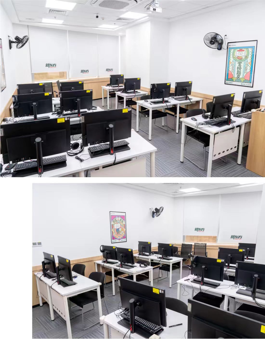 当然还少不了模考机房啦!新东方专业的模考机房配备完善,专门为雅思、托福、CEPT、propalcer、剑桥英语测试、等考试和测试而准备。阶段学习后,即使检验学习成果也是非常重要的哦!