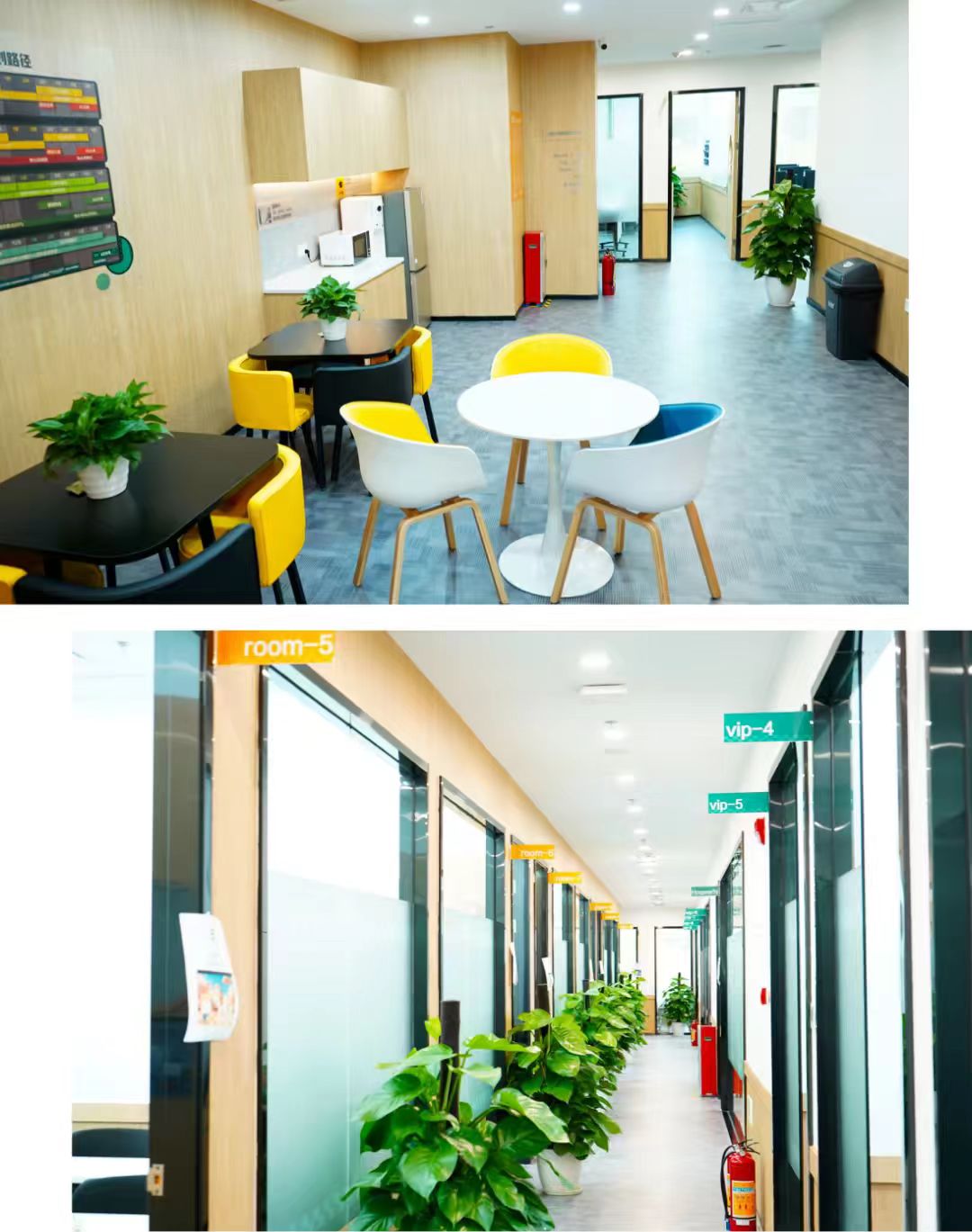 蛇口校区一共1400多平,提供除办公区外的33间教室和公共空间,20间教室,12间VIP教室,1间模考机房,容纳各种班型。
