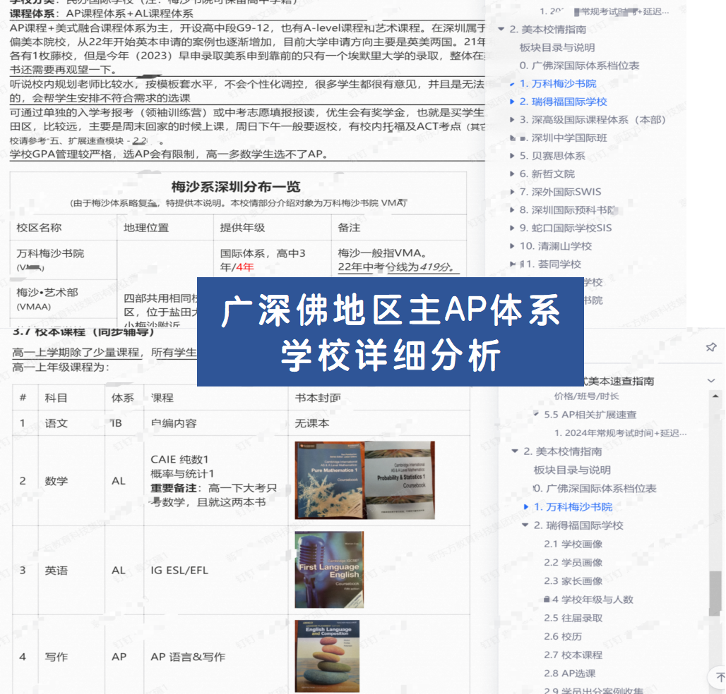 我们熟悉深圳地区主要国际学校及国际部的AP教学进度与考评特点。无论是深圳中学国际部、深圳外国语学校国际部、贝赛思、万科梅沙还是其他主流AP课程学校,我们的教学都能无缝衔接与补充校内课程,形成“校内提高GPA,校外冲刺高分”的有效合力。