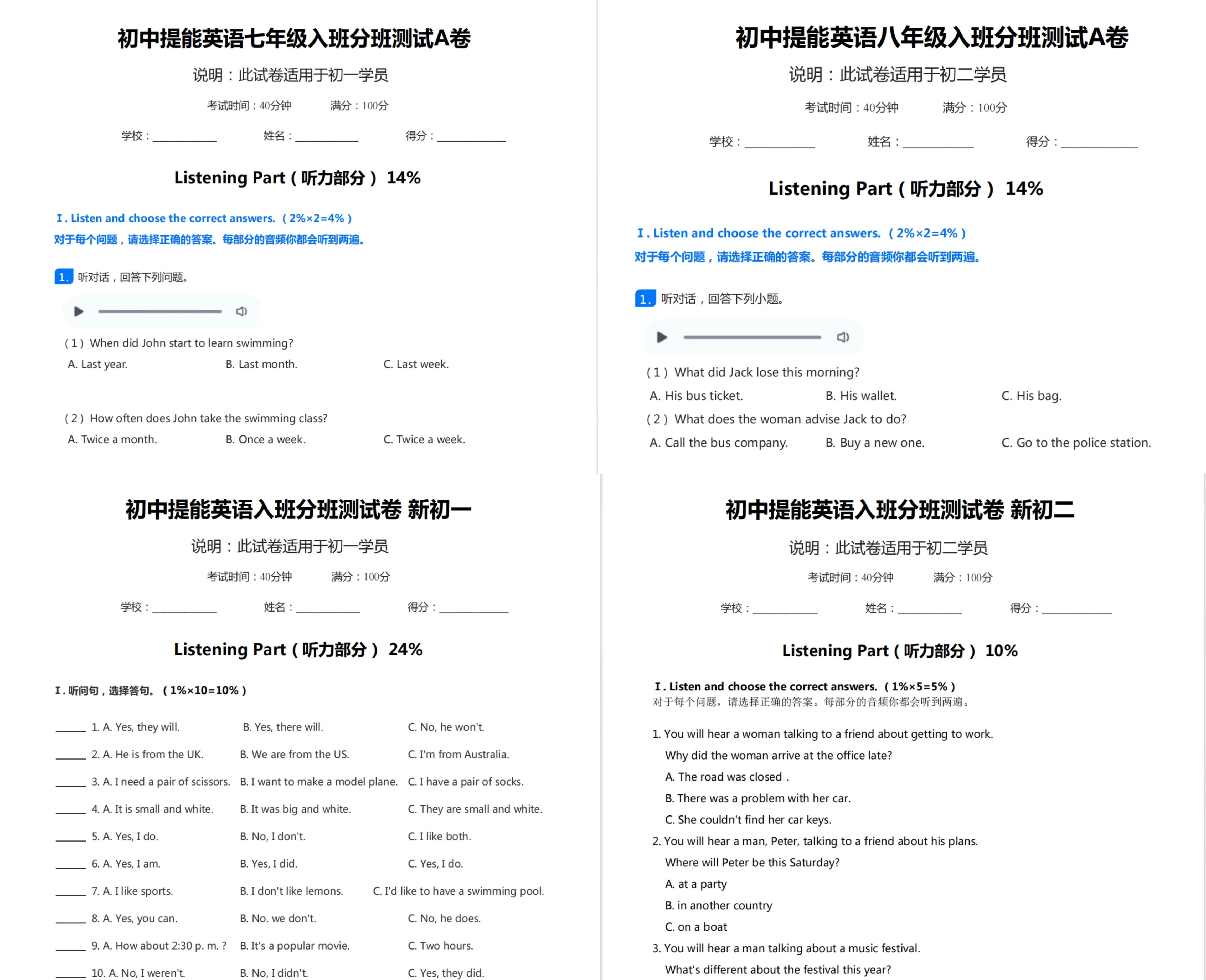 1、计划英语培优,前置英语学习,分散升学压力的初一初二学员。