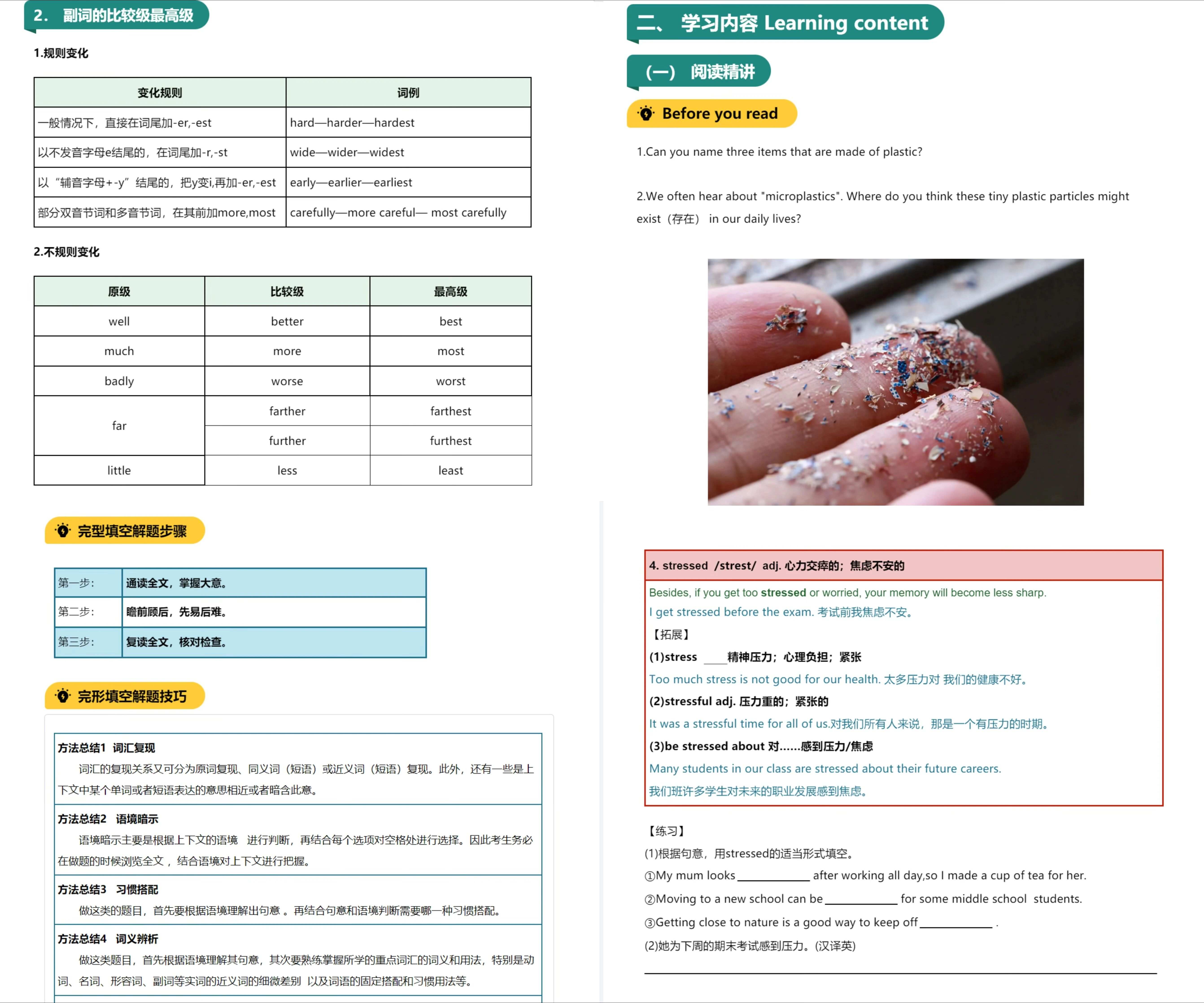 直击深圳学情:由一线教师团队自主研发,紧密对接深圳本地教学进度、重难点及考试题型。从词汇的精准释义、语法的深度辨析,到完形填空、阅读理解的解题技巧,进行地毯式梳理与强化。