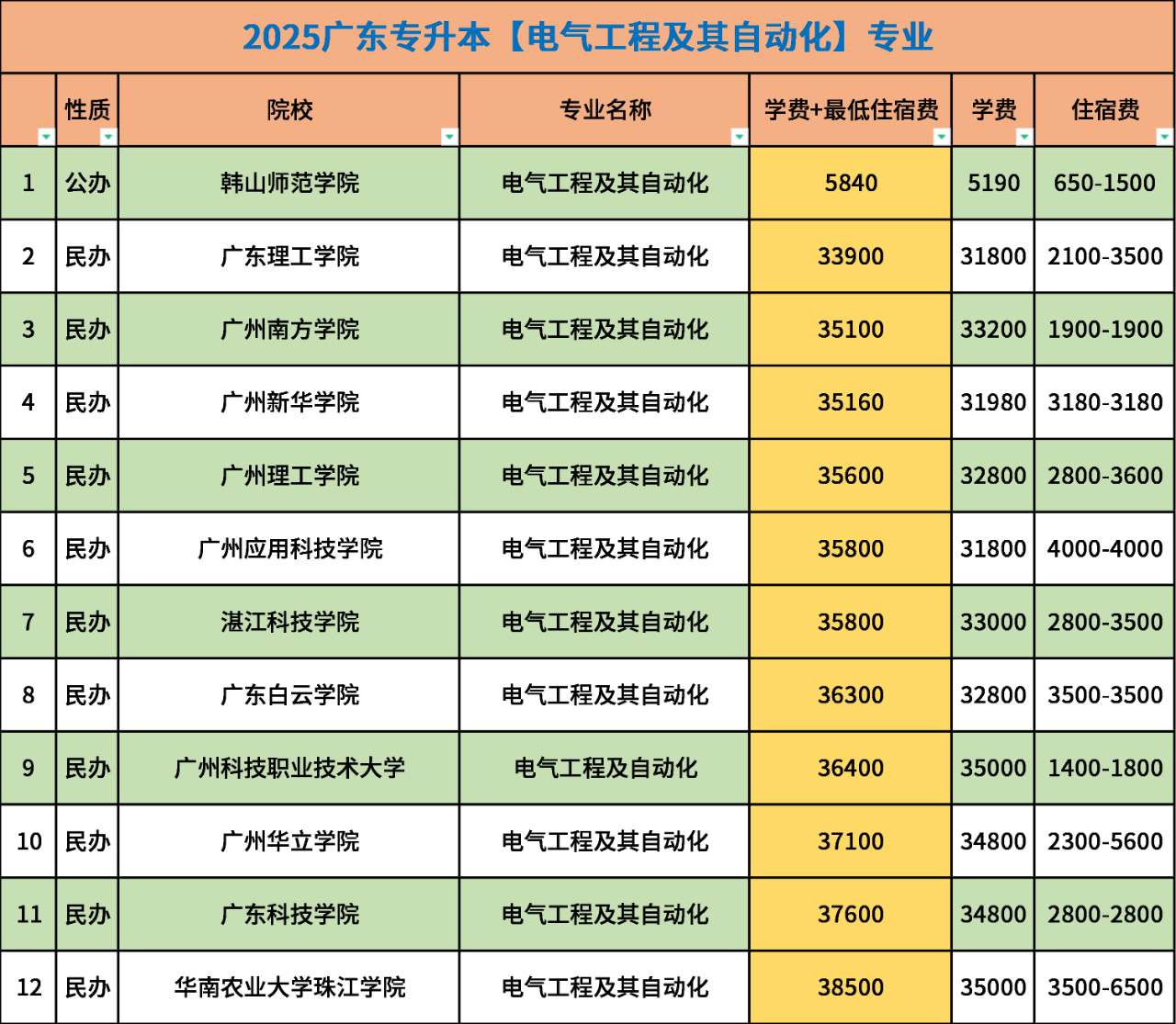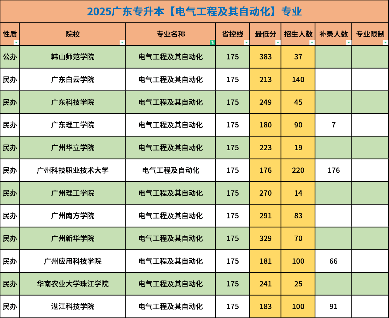 广东专升本(原专插本)电气工程及其自动化招生院校、人数、分数汇总!