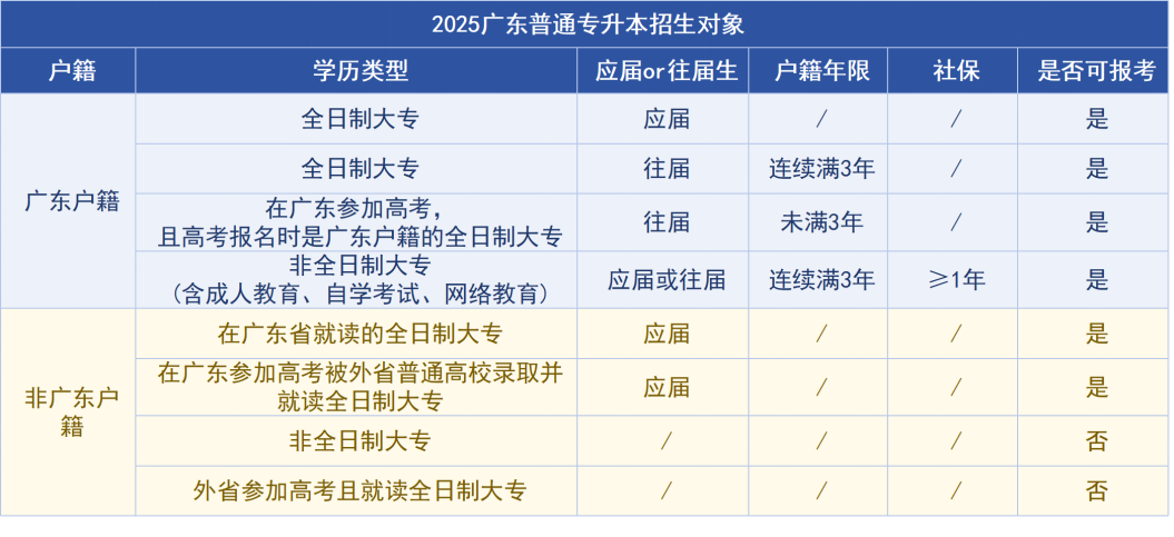 Q:非广东户籍往届毕业生能报考2025年我省普通专升本吗?