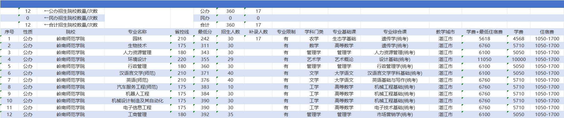 第一,招生专业和人数,12个专业招生360人,虽然缩招了,但招生人数依然比较多。