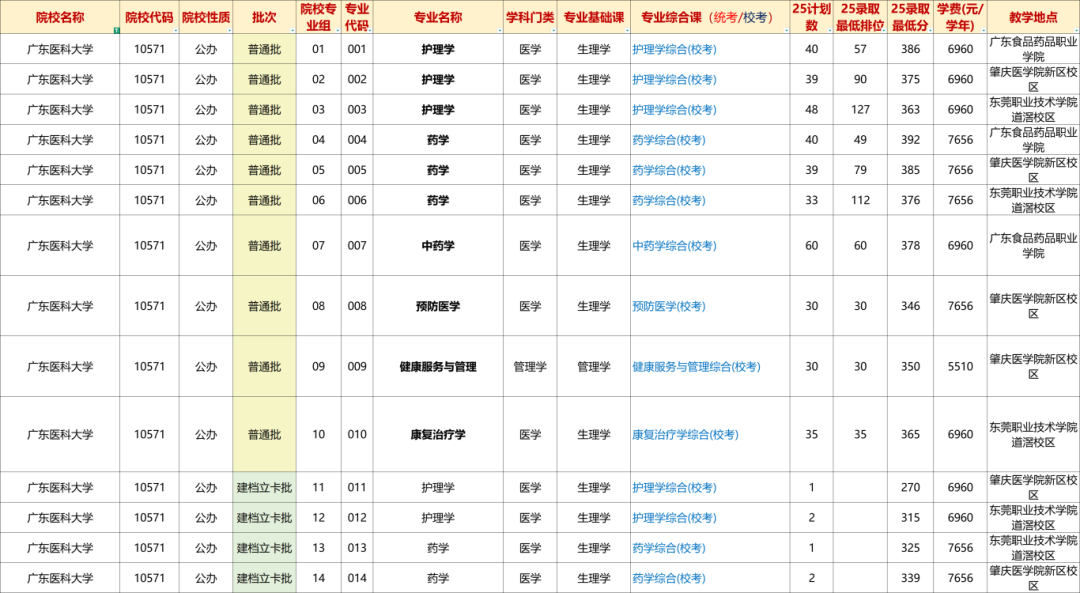 录取分数:普通批最低 346 分(预防医学),学费 6960-7656 元 / 学年。