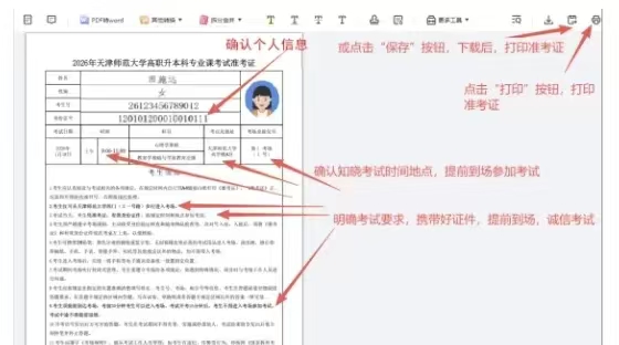 天津师范大学专升本:2026年学前教育专业课考试准考证打印通知
