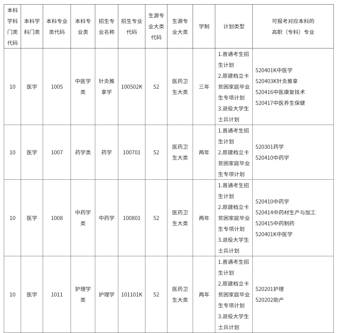 广西中医药大学2026年普通高等教育专升本招生专业表