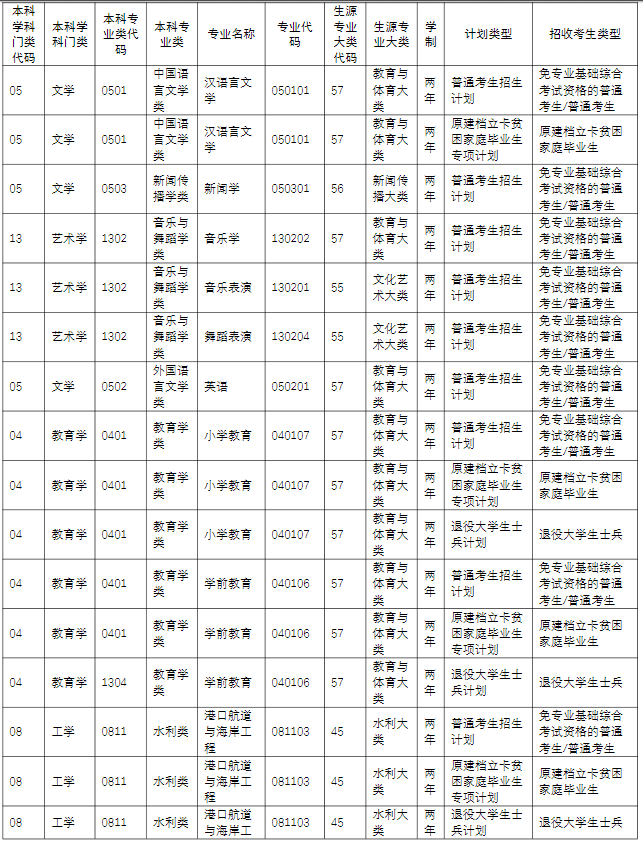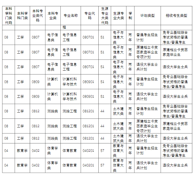 3征入伍服义务兵役,2025年1月至2026年1月退役的大学生士兵。3.旅游大类和教育与体育大类的公共基础课为语文。4.2026年我校专升本招生专业(具体详见下表),最终招生本专业以考试院公布的为准。