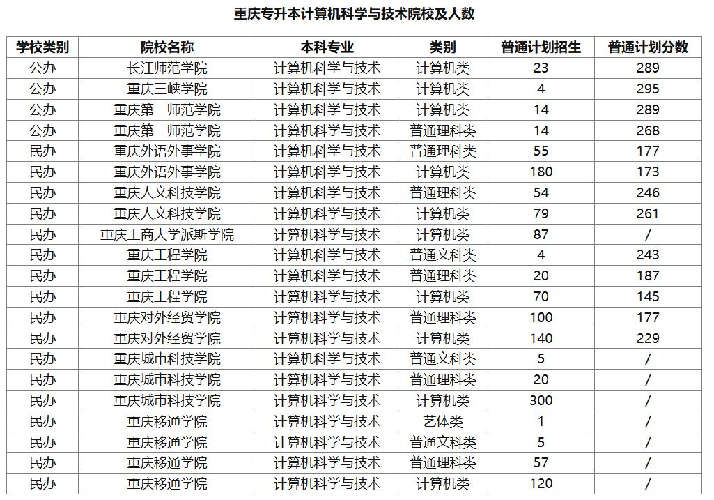 2025年重庆专升本计算机科学与技术招生院校汇总