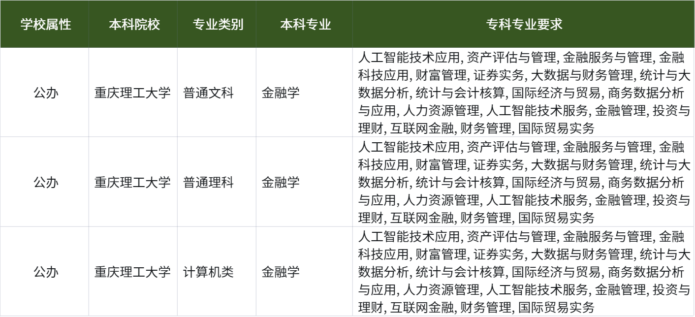 2026年重庆专升本:重庆理工大学专升本的金融学专业招哪些专科专业?