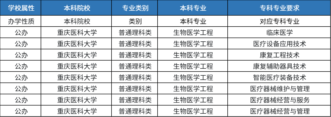 以下是2025年重庆专升本考试,重庆医科大学的生物工程专业招生的一览表,供大家参考