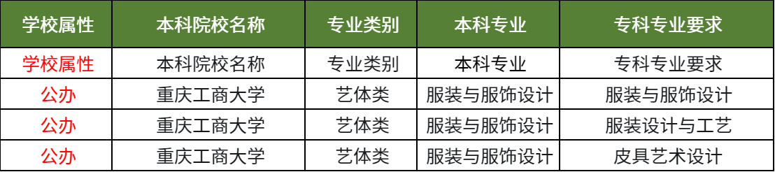 在重庆专升本考试中,重庆重庆工商大学的服装与服饰设计招哪些专科专业?