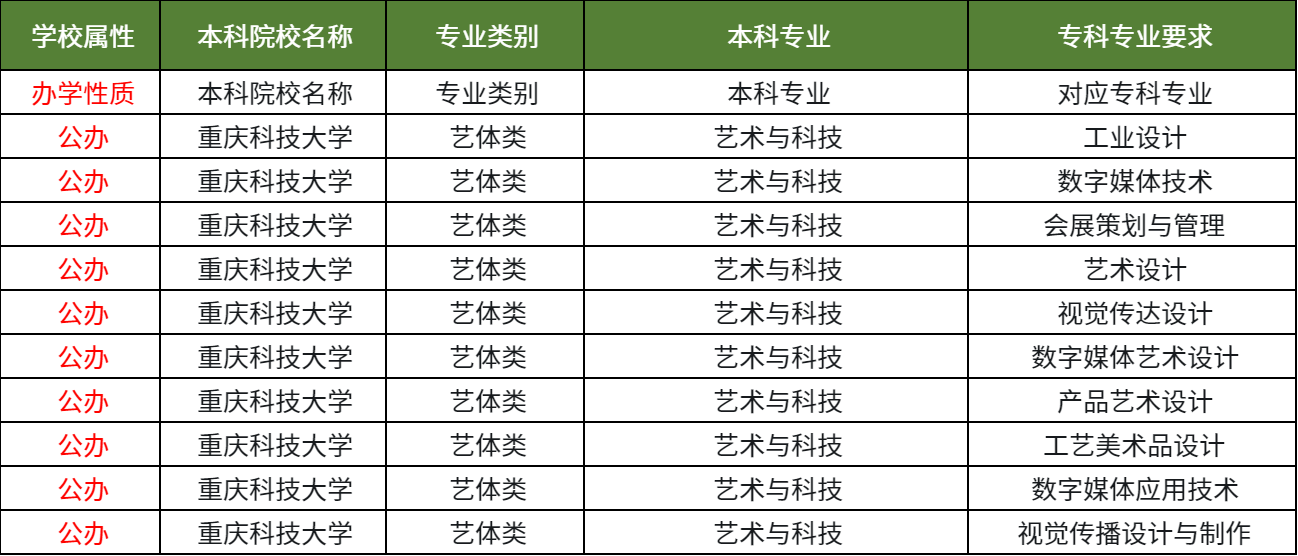 2026年重庆专升本:重庆科技大学专升本的艺术与科技专业招哪些专科专业?