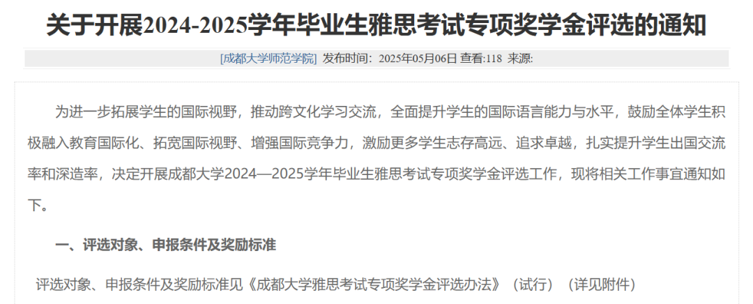 比如,成都大学师范学院设置了毕业生雅思考试专项奖学金,依据不同分数给予学生不同的奖金或给学生直接报销考试费!