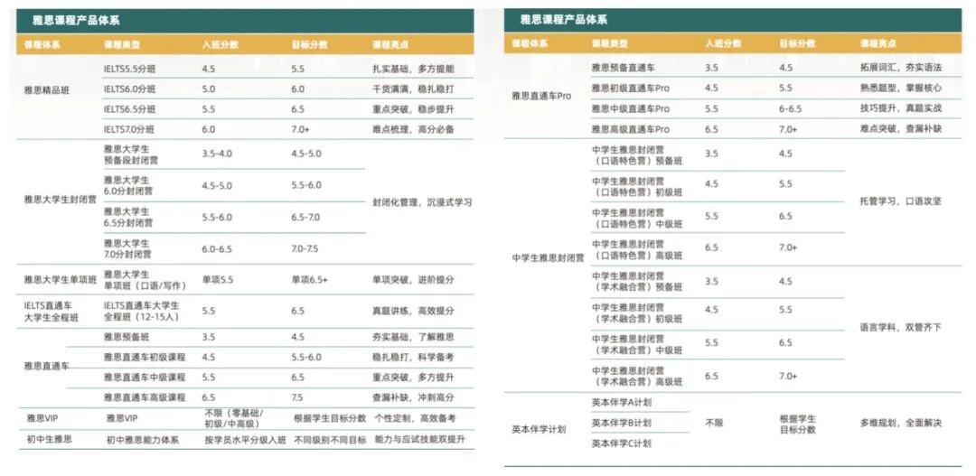 新东方针对雅思考生的不同学习时间、目标分数、学习管理和生活管理等需求,提供矩阵式全科/单项/一站 式雅思课程。同时匹配闭环式学生服务,从课前测试与学习规划、课中全程学习跟踪与多维检测、到结课后持续给予考前预测与考后辅导支持,始终陪伴学员成长。