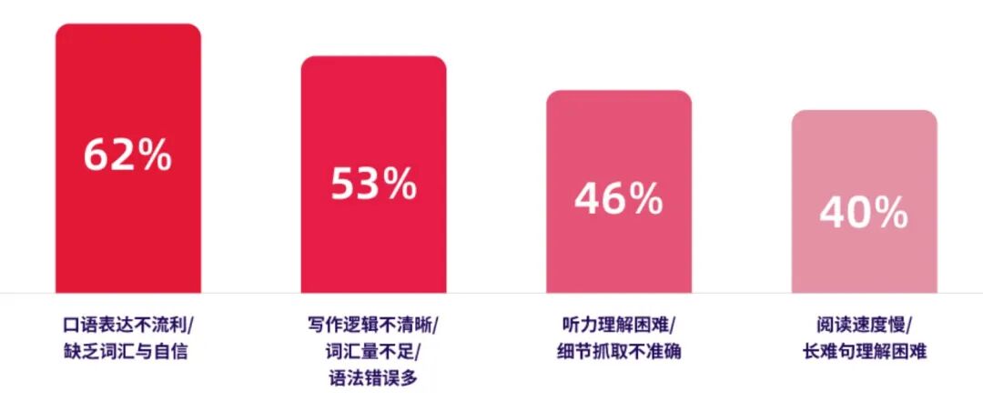 调研显示,输出类科目困扰显著高于输入类,62%的考生担忧口语不流利、缺少信心,53%在写作逻辑和语法上受阻;相比之下,听力与阅读难题的困扰占比相对较低。雅思备考进入“精准突破时代”。