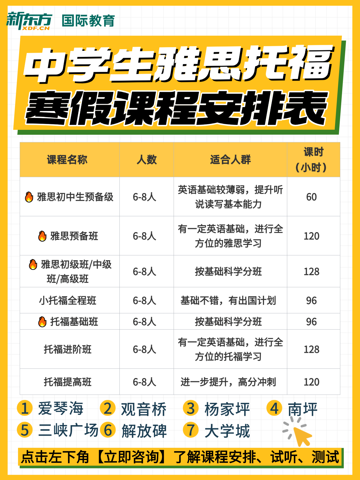 重庆初高中生留学双保险!托福雅思寒假班开课了