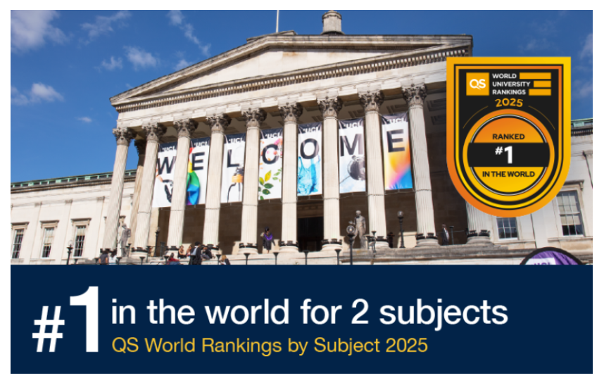 UCL在2025QS世界大学学科排名中延续了此前出色的成绩——10个学科专业位于全球前十,其中两个专业世界第一!