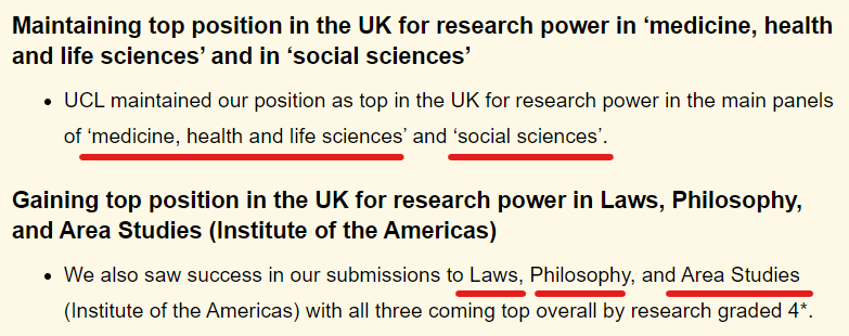 在以下学科领域,UCL的科研实力(research power)位居英国第一!(获得世界顶尖 4 * 的比例最高)?