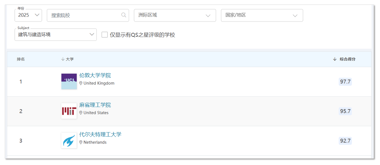 建筑学专业世界第一!