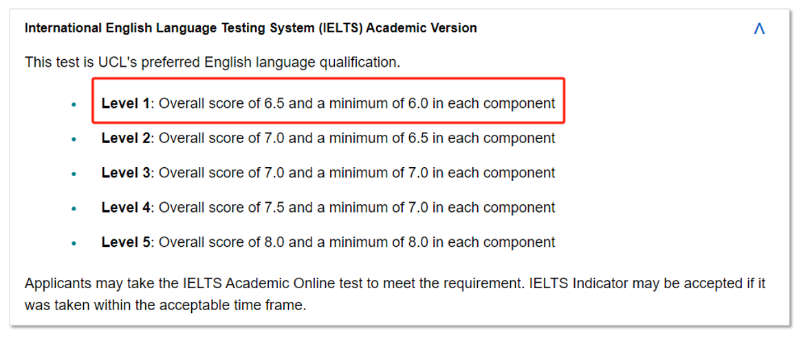 当然,由于近年来申请人数猛增,UCL的要求也越来越高,其中最低要求是雅思总分达到6.5,其他单项不低于6.0,其中雅思最高要求是总分8.0,小分不低于8.0,要求比牛剑还高!