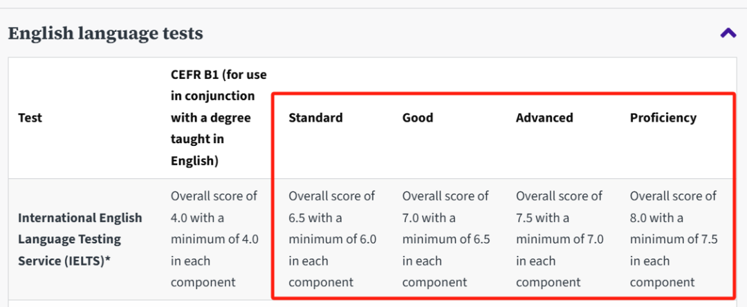 而针对研究生申请的雅思要求调整为Standard和Higher两个档:
