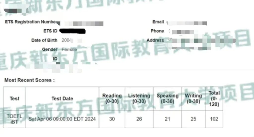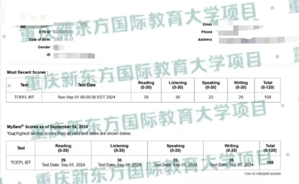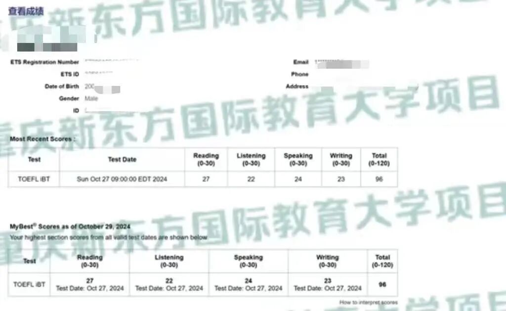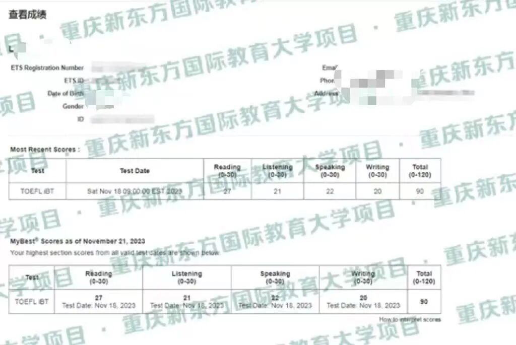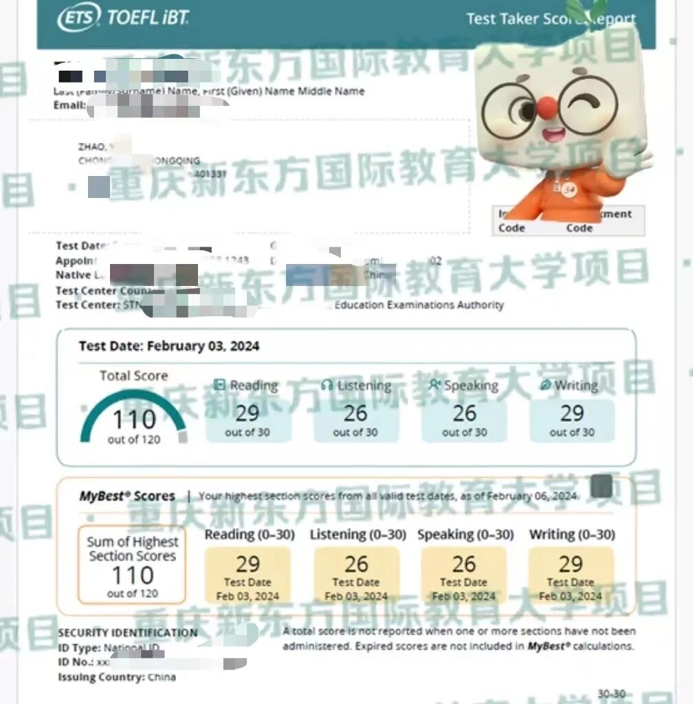托福考试总分114分(阅读29分听力30分口语30分写作25分)