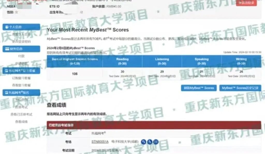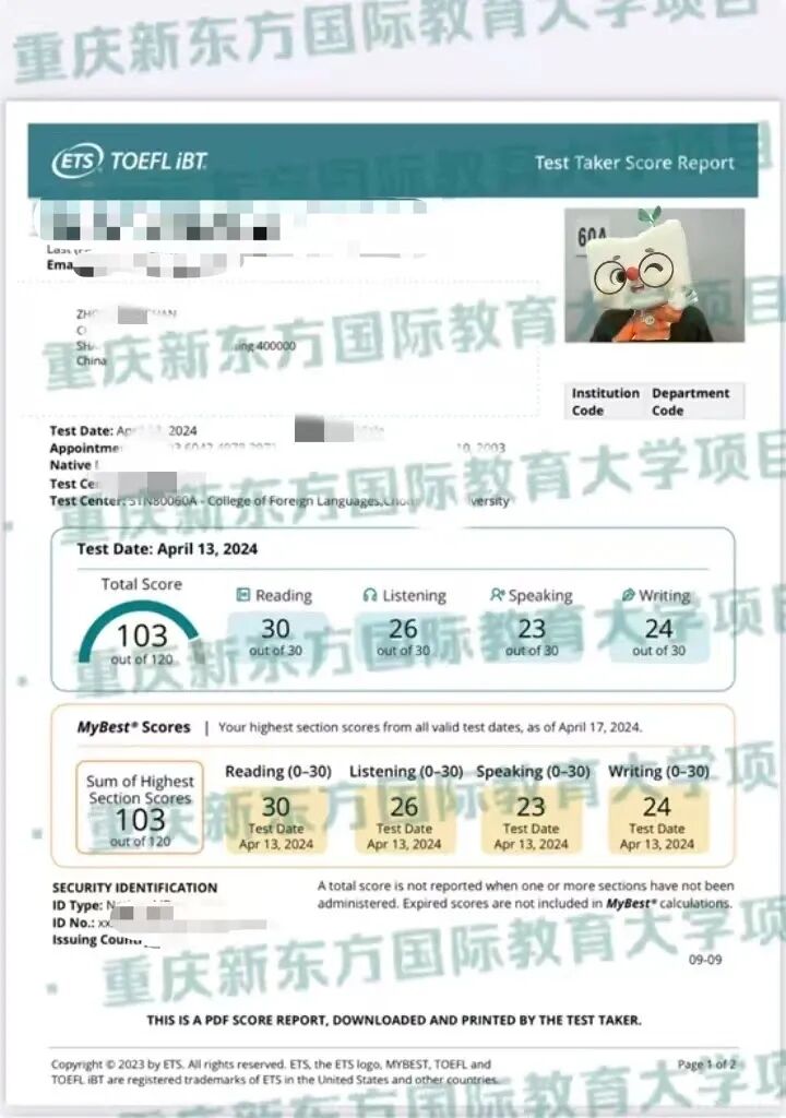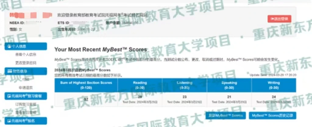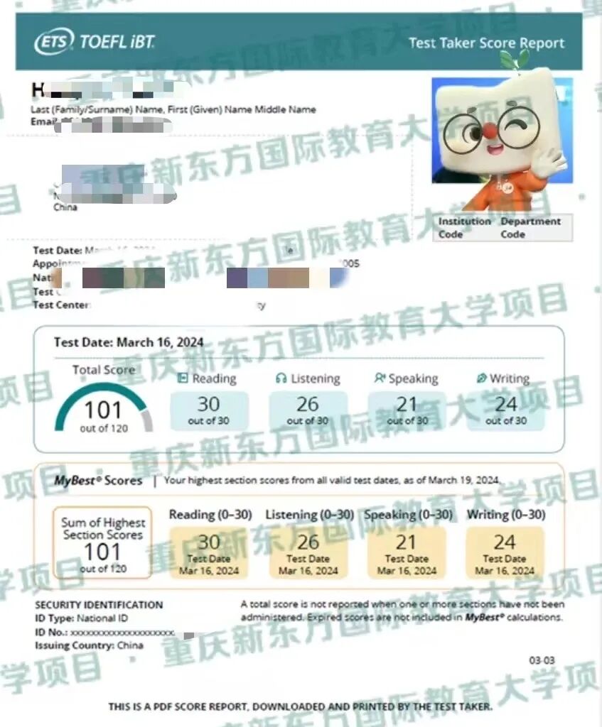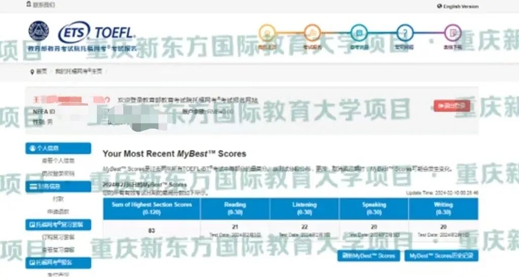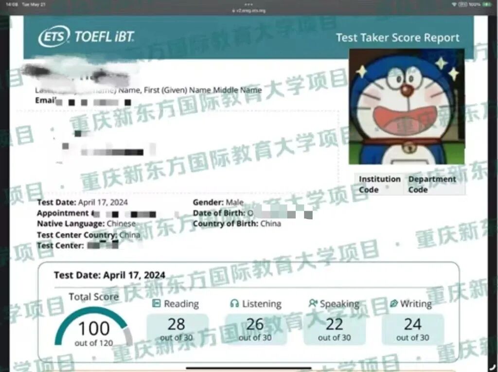 托福考试总分114分(阅读29分听力30分口语30分写作25分)