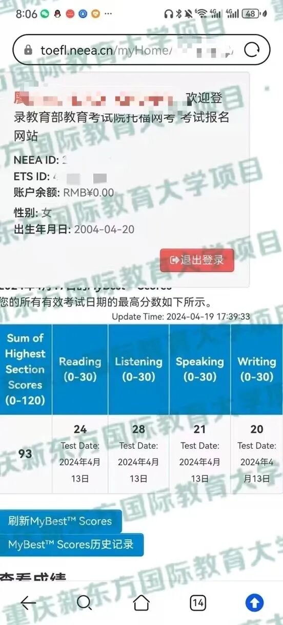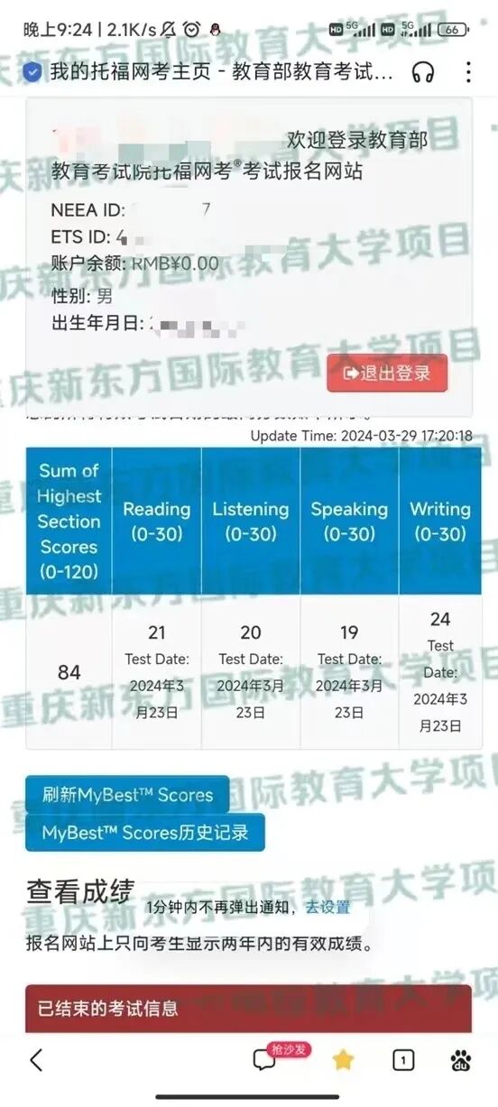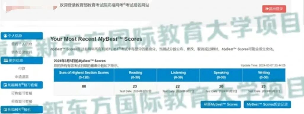 5人考试,全部出分,110一人,90以上一人【听力单科29】,张同学学前托福考试60多,学完88